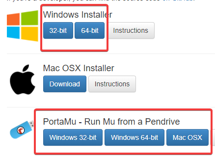 PortaMu hat den Vorteil, dass du nichts installieren musst und dass alles auch auf einem USB-Stick funktionieren würde (dort allerdings laaangsam). Dazu einfach die heruntergeladene Datei öffnen und in einen zuvor erstellten Ordner “Mu” (zB auf dem Desktop) entpacken. Gestartet wird diese Version durch Doppelklick auf “Launch Mu.bat”. (In der neuesten Version ist noch keine PortaMu-Version vorhanden.)