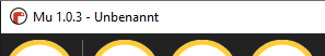 Diese sieht auf deinem Computer vielleicht anders aus, aber ihre Funktion ist immer dieselbe: sie zeigt die Version von Mu an, die du benutzt, zusammen mit dem Namen der aktuellen Python-Datei, die du gerade bearbeitest.
